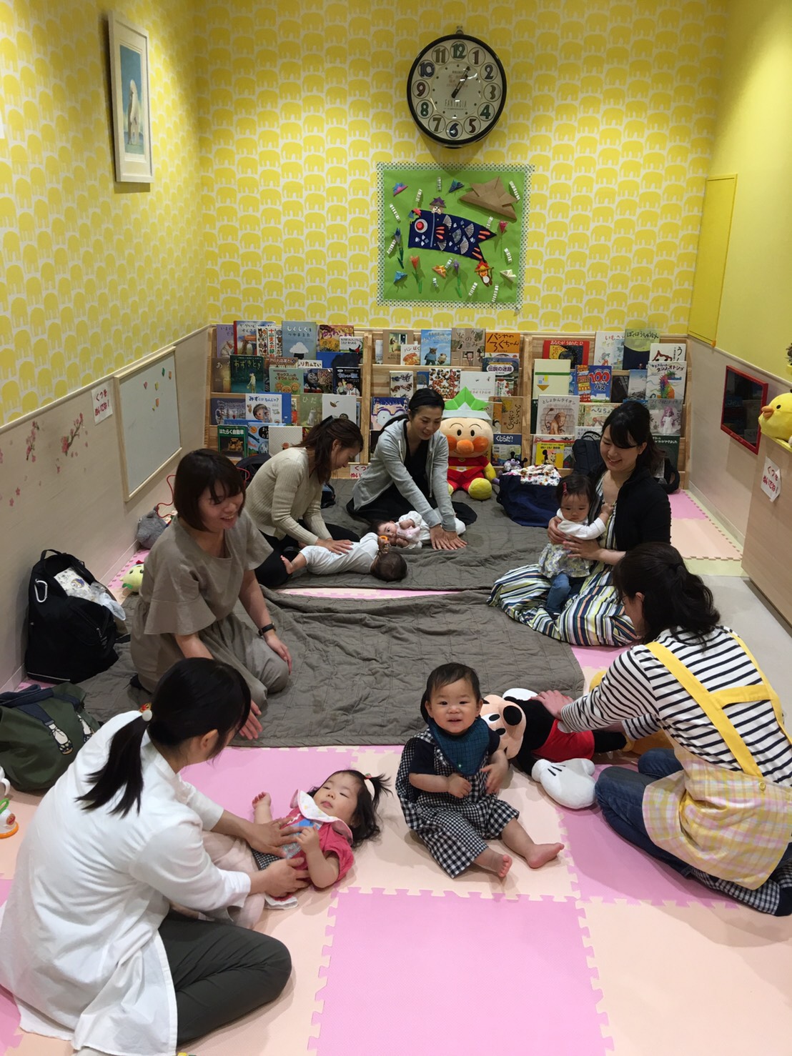 今月は、5組の親子さんの参加で、6ヶ月から1歳1ヶ月のお友達でした。