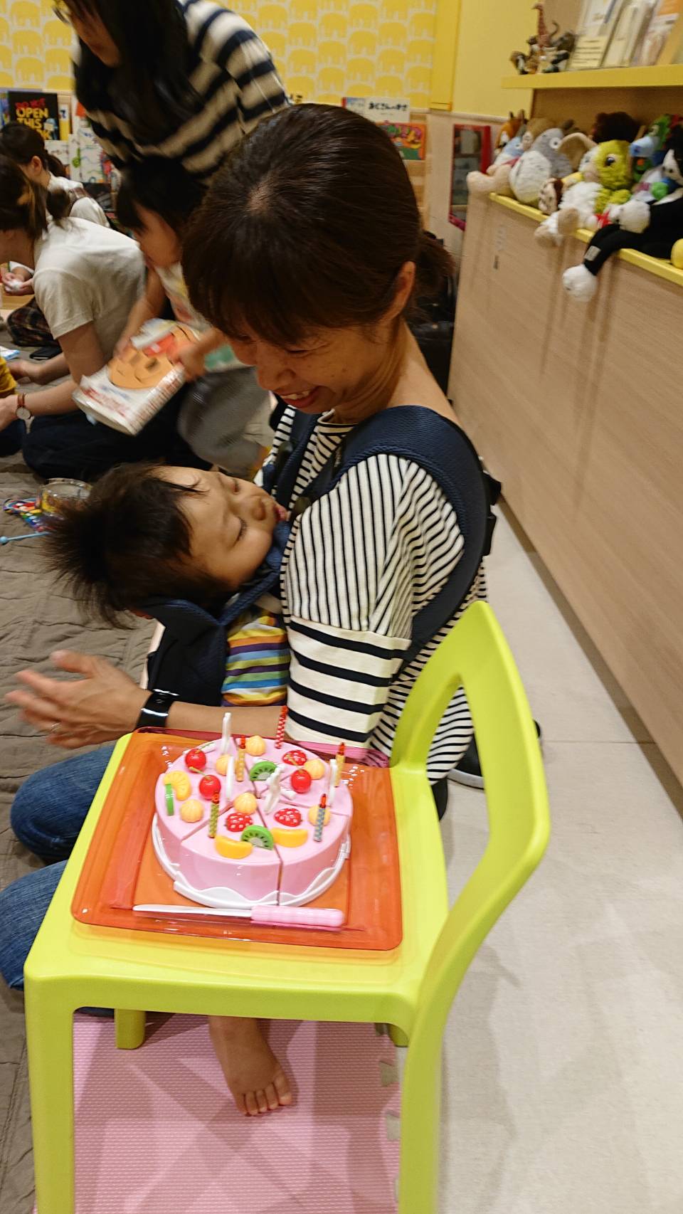 疲れちゃって夢のなか...zZZ みんなでお歌を歌ってお祝いしました♪
