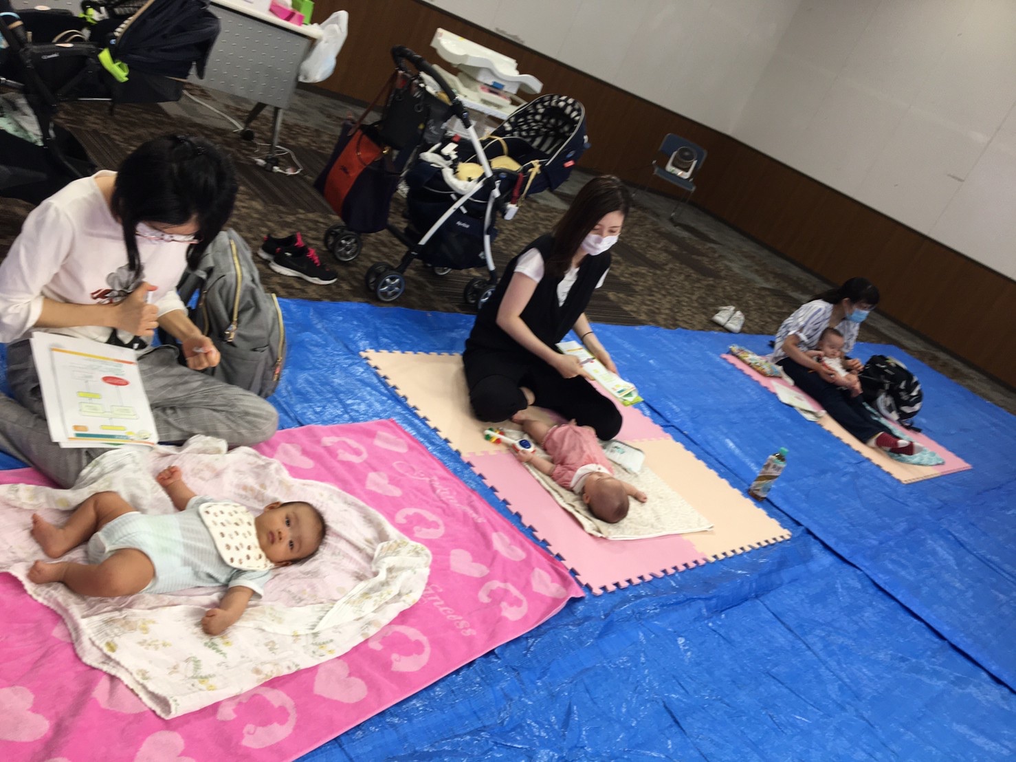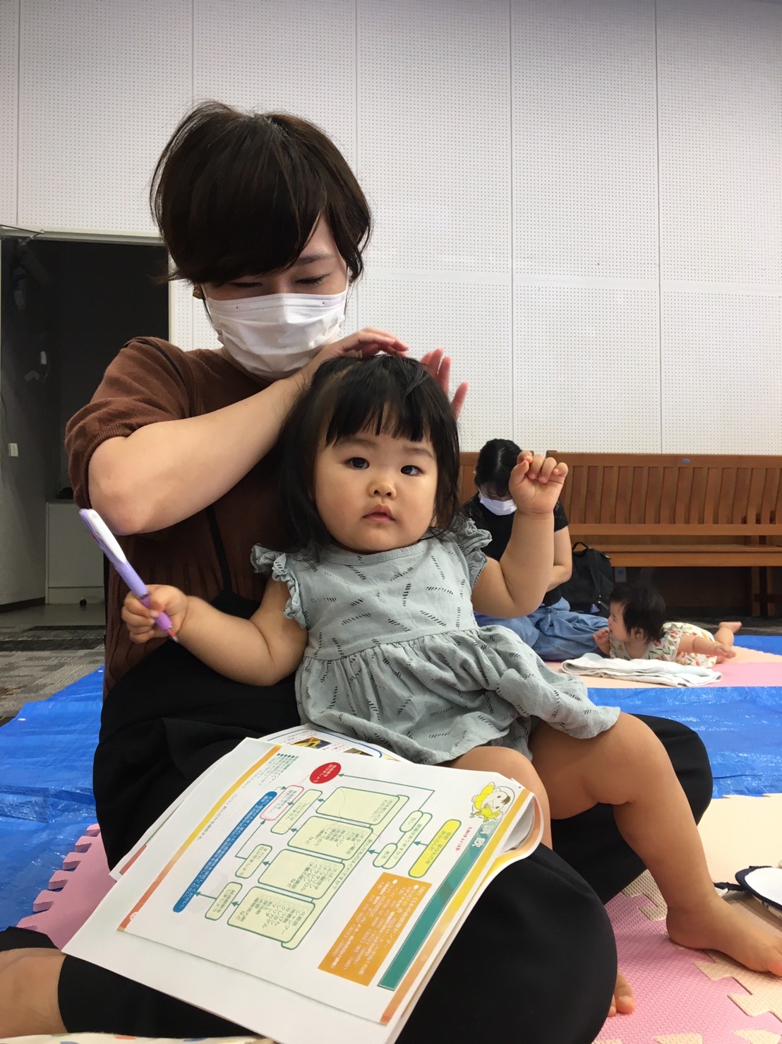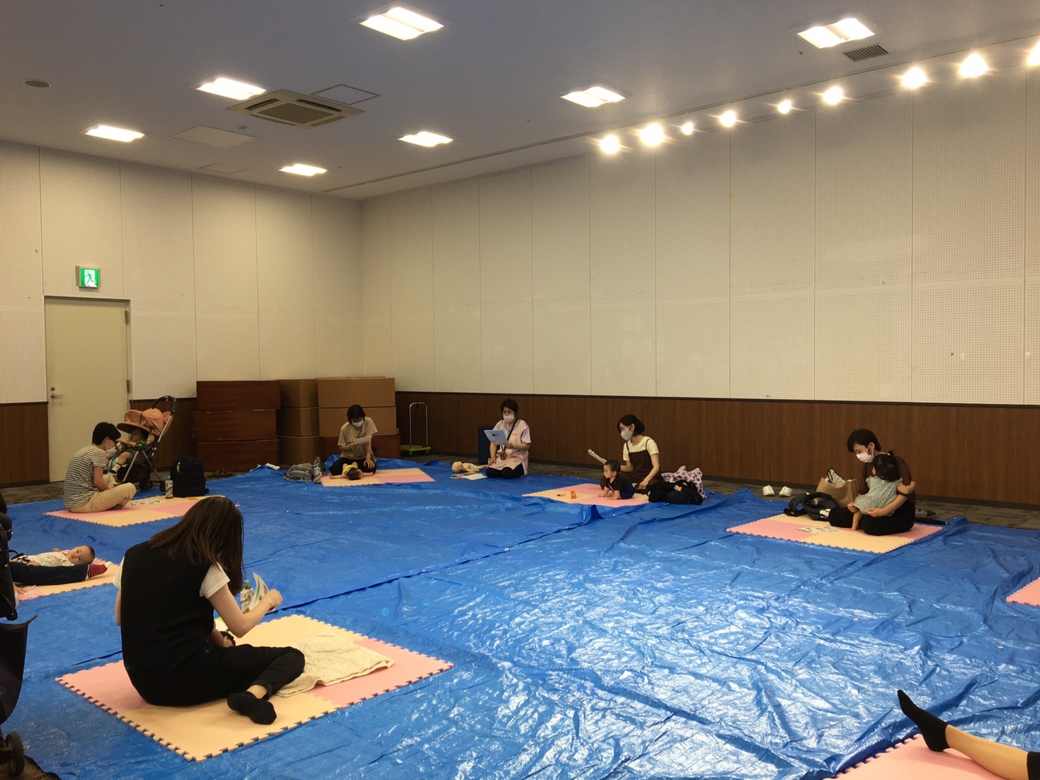 間隔をあけて席を準備し、それぞれのスペースでお座りいただきました。ソーシャルディスタンスを保ちつつも、お隣のお母さん同士でお話されている姿もありました。