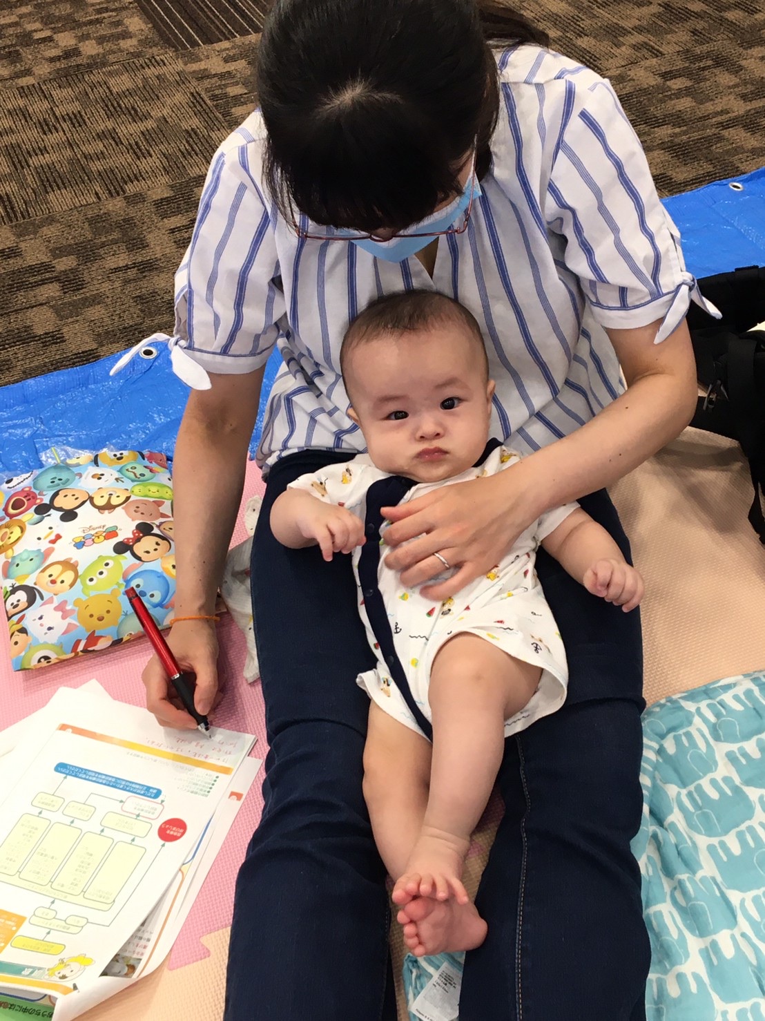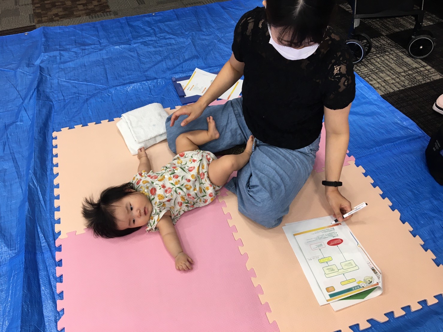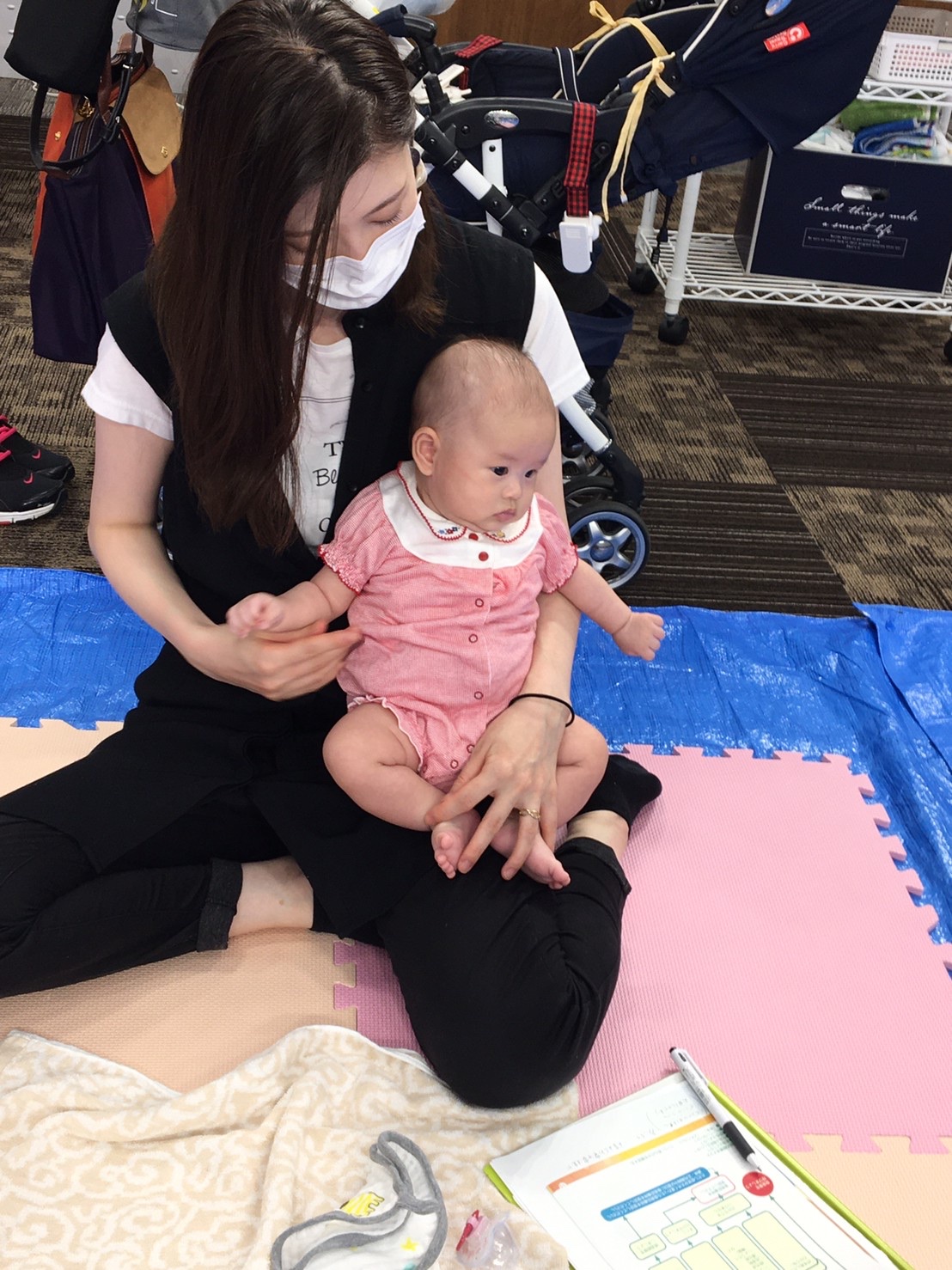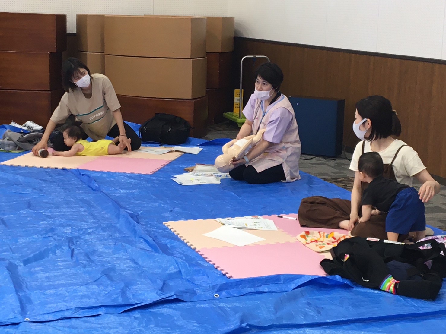 間隔をあけて席を準備し、それぞれのスペースでお座りいただきました。ソーシャルディスタンスを保ちつつも、お隣のお母さん同士でお話されている姿もありました。